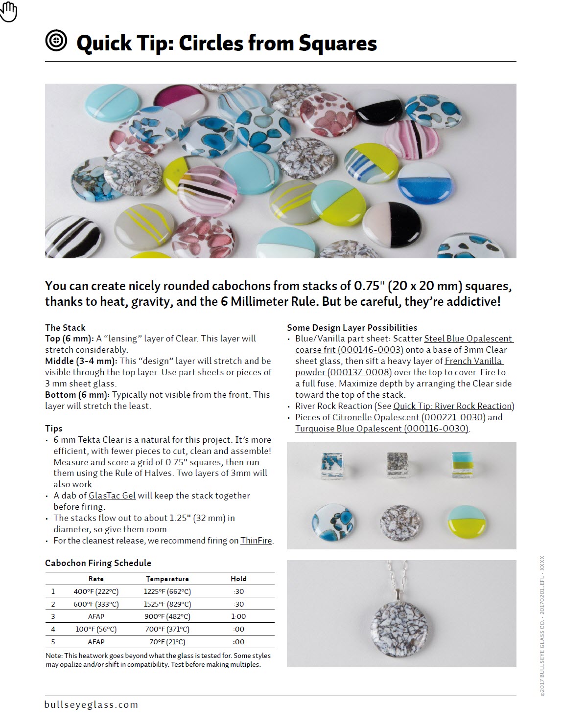 This QuickTip will teach you how to create nicely rounded cabochons from stacks of 0.75" (20 x 20 mm) squares, thanks to heat, gravity, and the 6 Millimeter Rule.